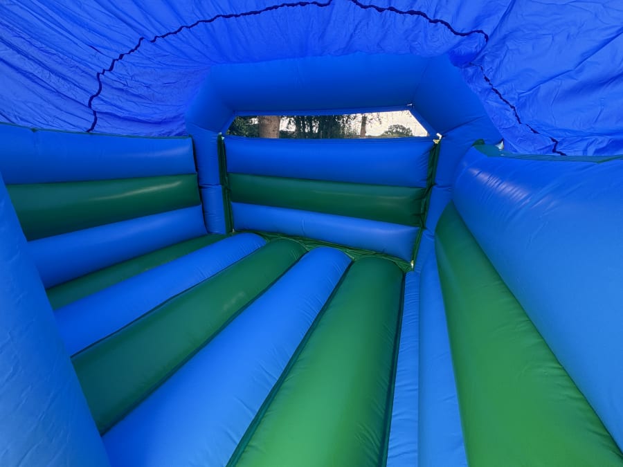 Bring the ultimate inflatable fun to your event with our Green & Blue Front Slide Combi Bouncy Castle – book now for guaranteed party smiles!