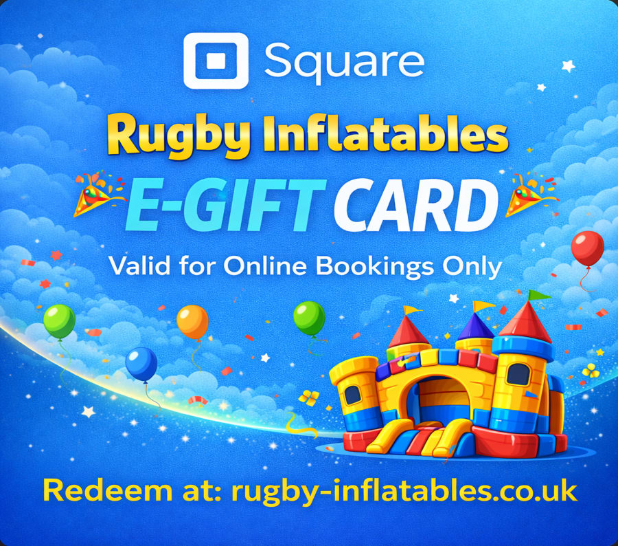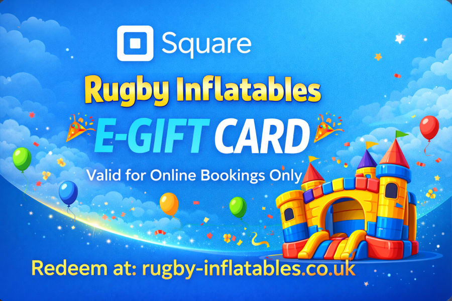 Looking for a gift that guarantees smiles? Our Rugby Inflatables E-Gift Cards are perfect for birthdays, parties, or any special occasion. Redeemable online at rugby-inflatables.co.uk, these vouchers give the recipient the freedom to choose any inflatable hire — from bouncy castles to slides and combo units. Best of all, our E-Gift Cards never expire!
