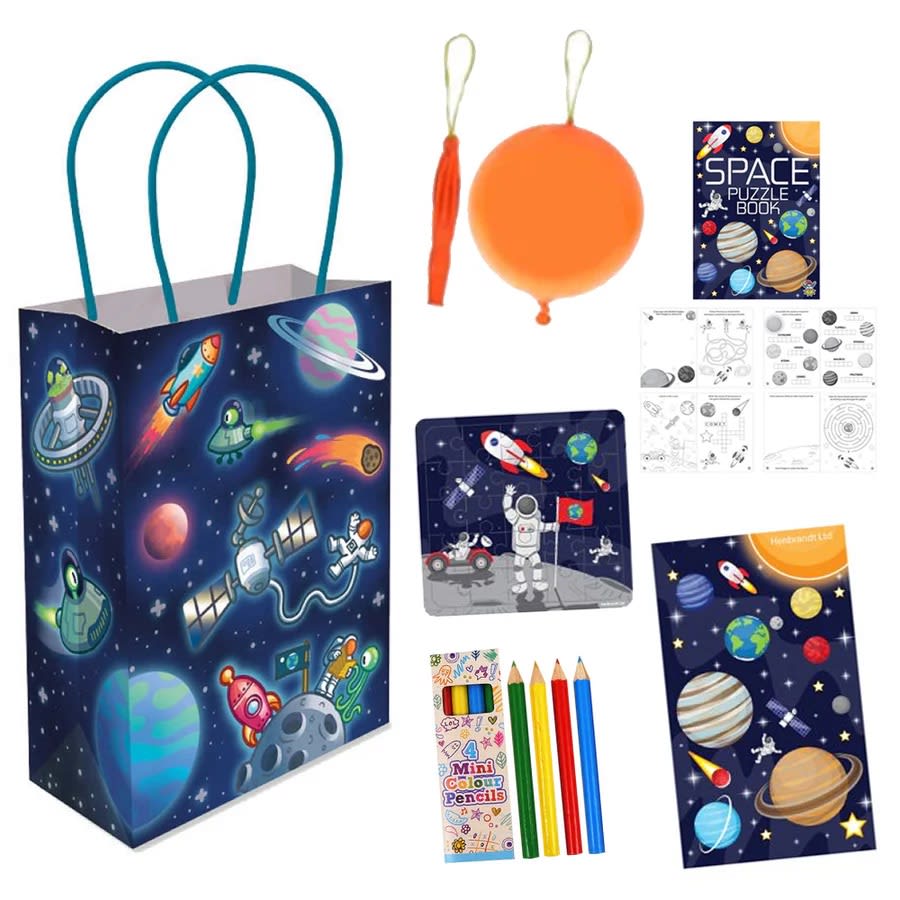 Blast off into fun with our Space Party Bag! Packed with planet-themed goodies and eco-friendly surprises, this bag will keep young astronauts entertained long after the party ends. Perfect for fans of rockets, stars and galaxies — and a great match with our Dinosaur or Gaming bags if you’re hosting a mixed-theme celebration.